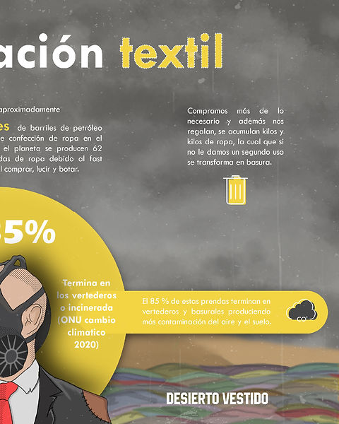 Diseño de infografía para concientizar sobre la contaminación textil. La cual incluye datos, consejos y opiniones de expertos